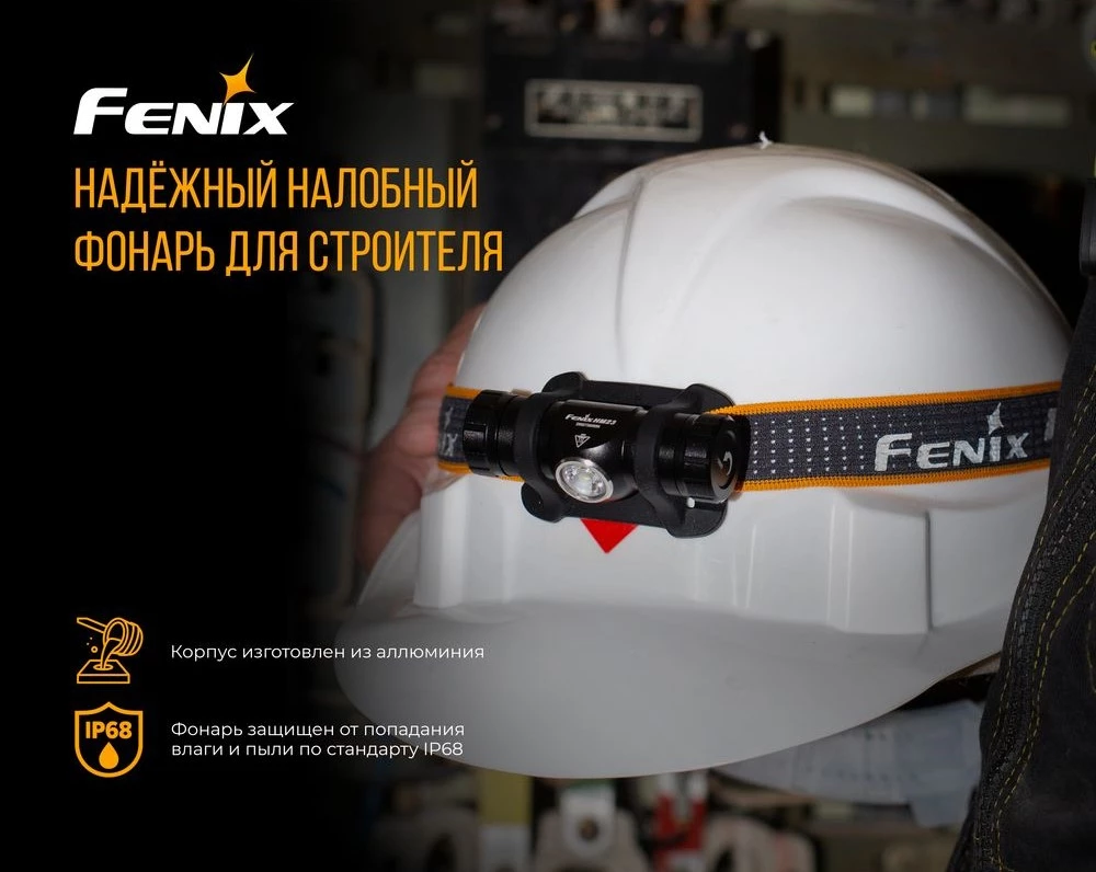 Корпус Fenix HM23 выполнен из анодированного алюминия, что защищает фонарь от ржавления и большинства механических поломок. Он выдерживает падение с высоты одного метра даже на камни. Полная гидроизоляция корпуса позволяет без ограничений использовать Fenix HM23 при любой погоде.